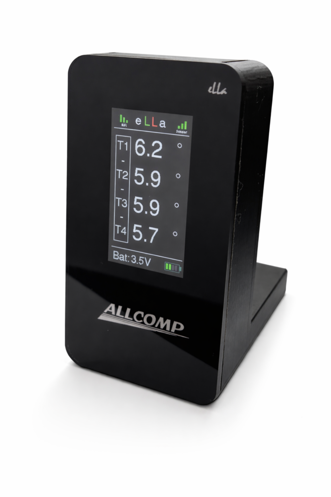 - ESP-Now s displejem 1.9″ – zařízení rovnou zobrazuje data z teploměrné tyče na grafickém displeji. Data o čtyřech teplotách, stavu baterie a stavu připojení k teploměrné tyči.